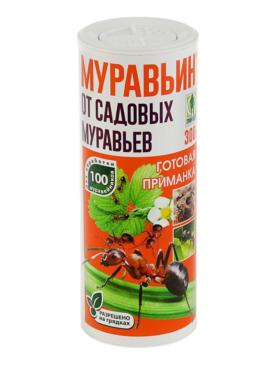 Специальное средство от вредных садовых муравьев. Повышенная безопасность препаративной формы выгодно отличают МУРАВЬИН от аналогичных препаратов. Готовый к применению препарат очень удобен — не нужно ни с чем смешивать или разводить водой. Расход препарата - 20-30 г на 10 кв.м., внесение в муравейник на глубину 2-3 см
